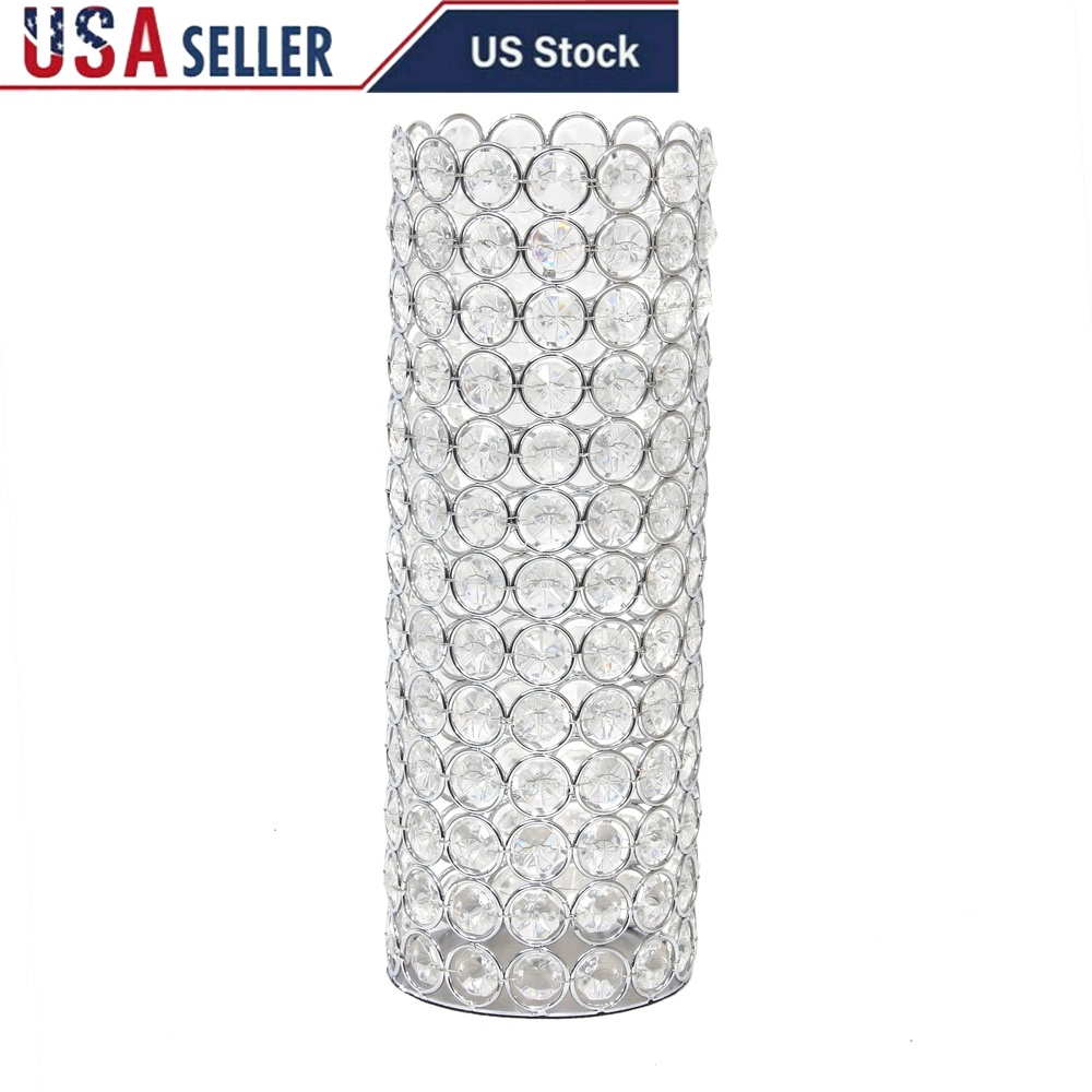 Buy 11.25 Inch Crystal Cylinder Decorative Flower Vase Candle Holder Wedding Centerpiece Chrome Base K5 Crystals Home Accent