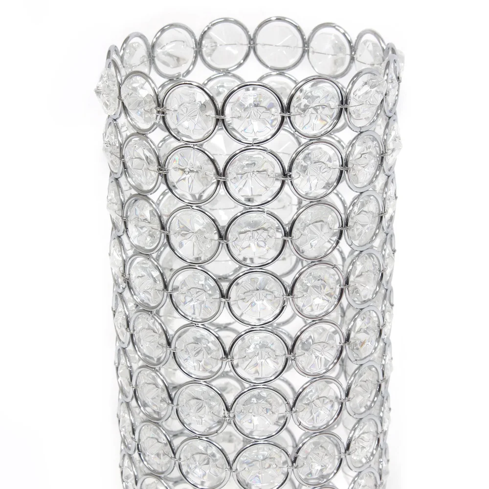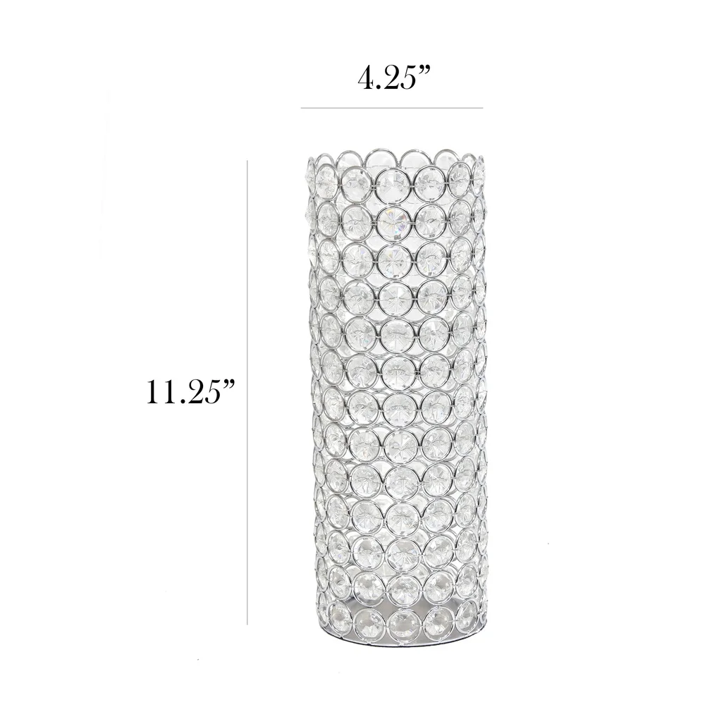 11.25 Inch Crystal Cylinder Decorative Flower Vase Candle Holder Wedding Centerpiece Chrome Base K5 Crystals Home Accent