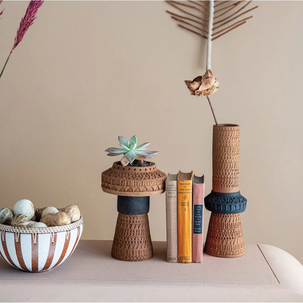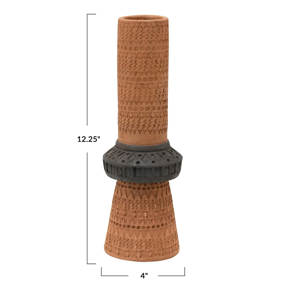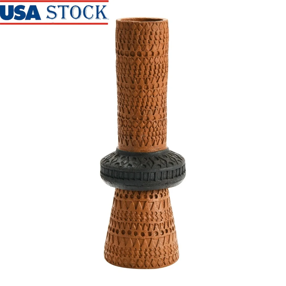 Buy Handmade Debossed Terracotta Vase Floral Plant Holder Boho Decor Creative Home Accent Unique Decorative Piece Dried Flowers